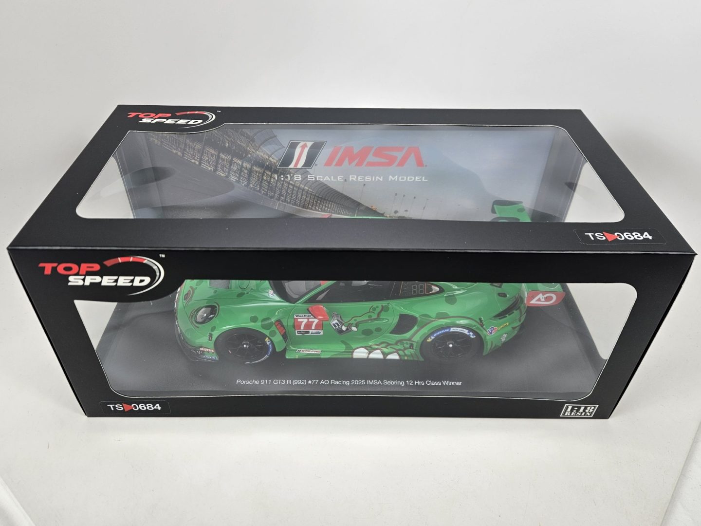1:18 TSM 2025 AO Racing Rexy #77 12 Hours of Sebring Porsche 911 GT3 R GTD Pro Diecast by Top Speed Models