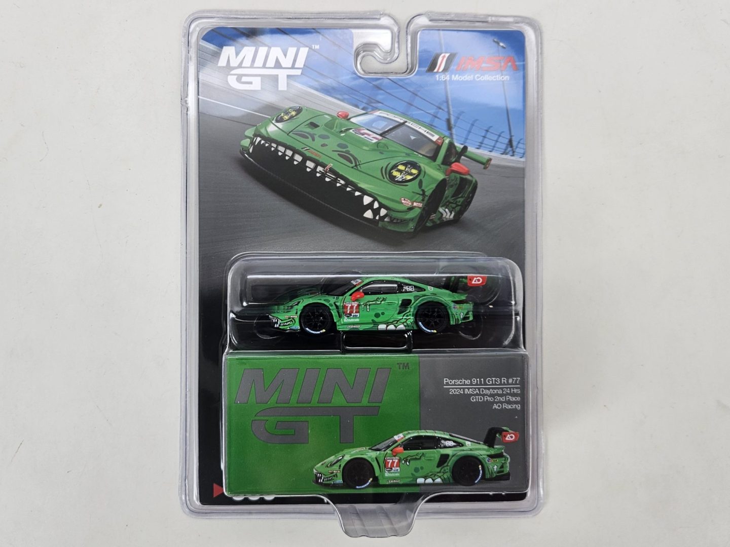 1:64 2024 MGT #77 AO Racing Rexy Daytona 2nd Place Porsche 911 GT3 R Diecast by Mini GT