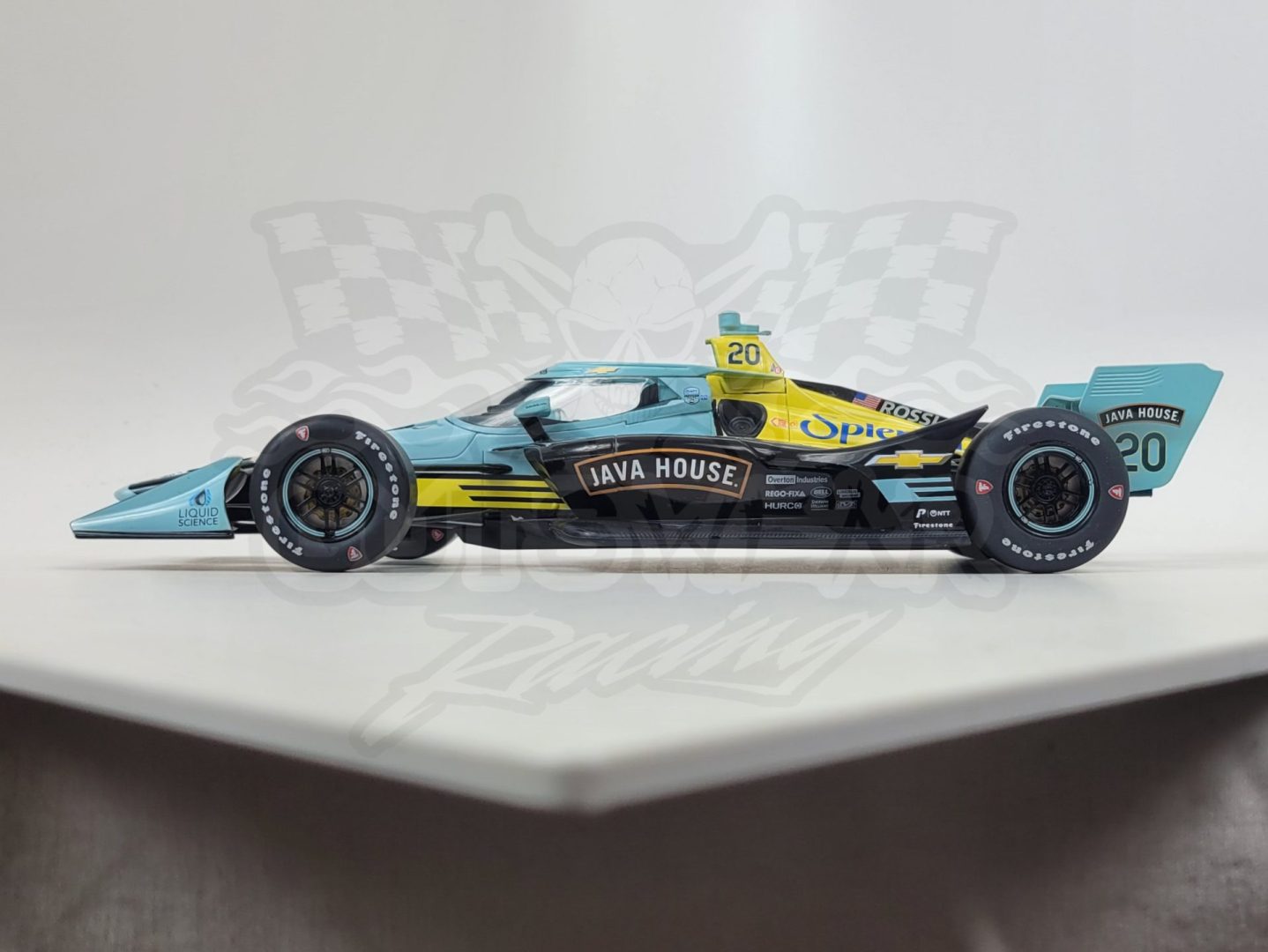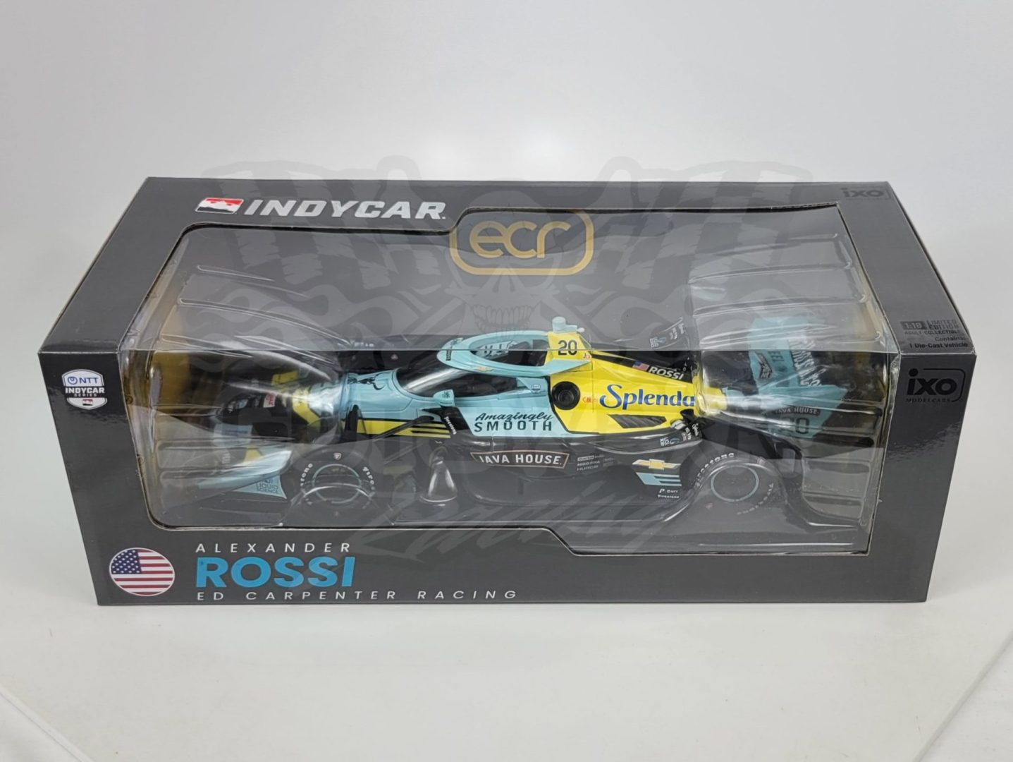 Produced by IXO Model Cars, this is a detailed 1/18 scale detailed replica of the 2026 Ed Carpenter Racing #20 Java House, Chevrolet powered Dallara IndyCar driven by Alexander Rossi. Features authentic sponsor and team logos, detailed cockpit, rubber tires, poseable front suspension and comes with gorgeous window display box. Size: 10″ Limited edition. Officially Licensed by IndyCar.