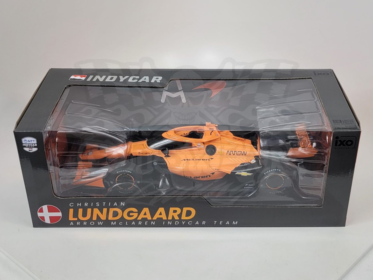 Produced by IXO Model Cars, this is a detailed 1/18 scale detailed replica of the 2026 Arrow McLaren IndyCar Team, Chevrolet powered Dallara IndyCar driven by Christian Lundgaard. Features authentic sponsor and team logos, detailed cockpit, rubber tires, poseable front suspension and comes with gorgeous window display box. Size: 10″ Limited edition. Officially Licensed by IndyCar.