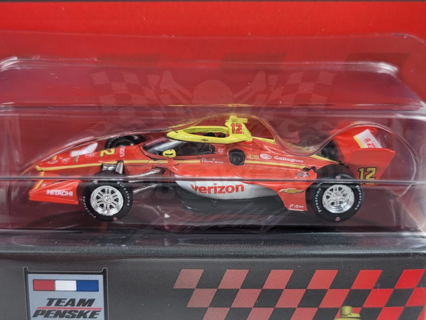 Produced by IXO Model Cars, this is a detailed 1/64 scale 2026 #12 Verizon, Team Penske, Chevrolet-powered Dallara IndyCar driven by David Malukas. Features authentic logos, a detailed cockpit, rubber tires, and comes with a collector box. Limited edition. Officially Licensed by IndyCar.