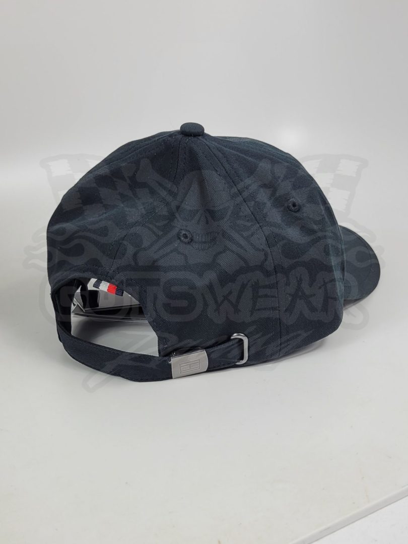 This team authentic hat made by Tommy Hilfiger is created with 95% organic cotton and features the Cadillac Formula 1 Team and the Tommy Hilfiger logos stitched on the front hat. The hat also includes an adjustable strap on the back held together with a metal latch.