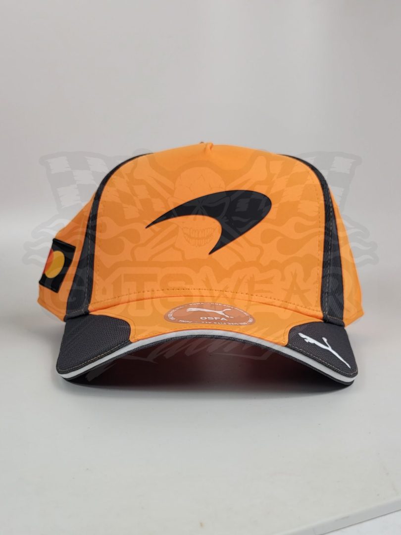 Made by PUMA. This replica team hat of the 2026 McLaren Racing F1 Team comes in the iconic papaya orange with the McLaren insignia on the front of the hat. Completed with team sponsors on the side and bill.