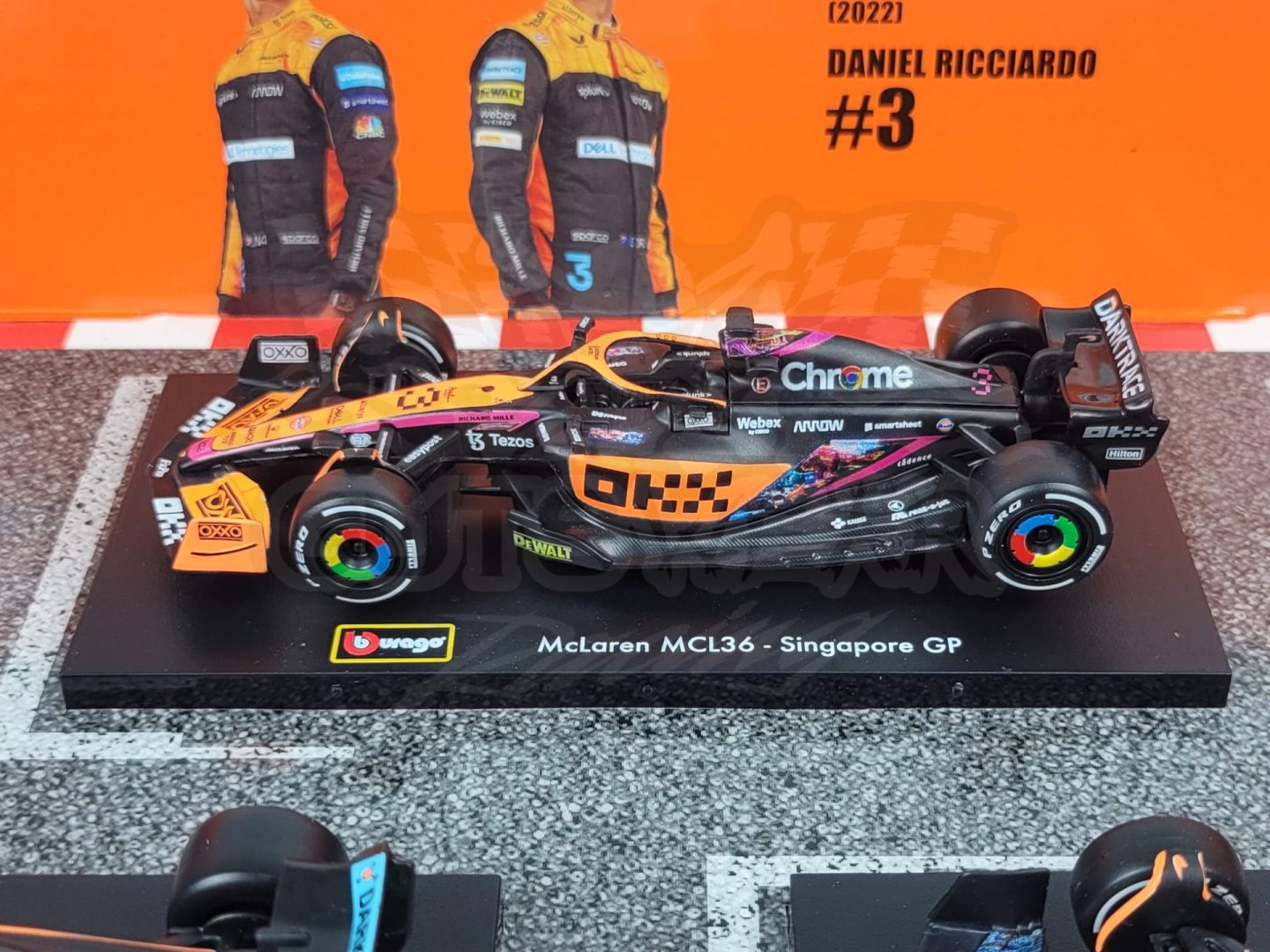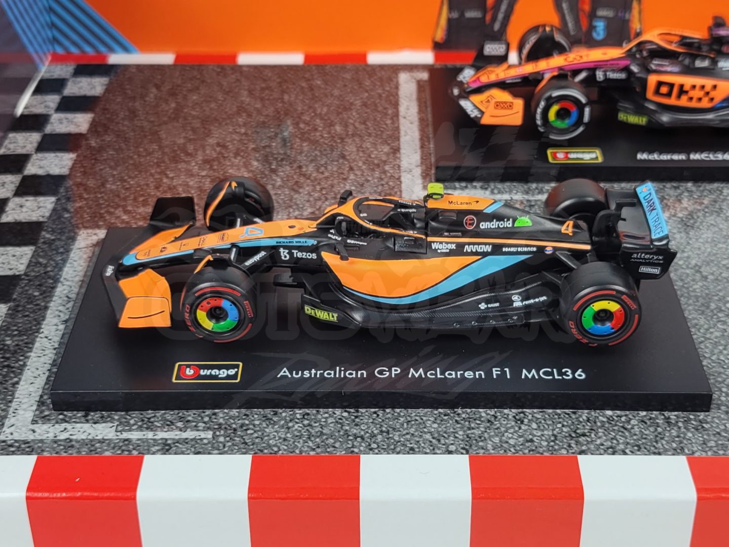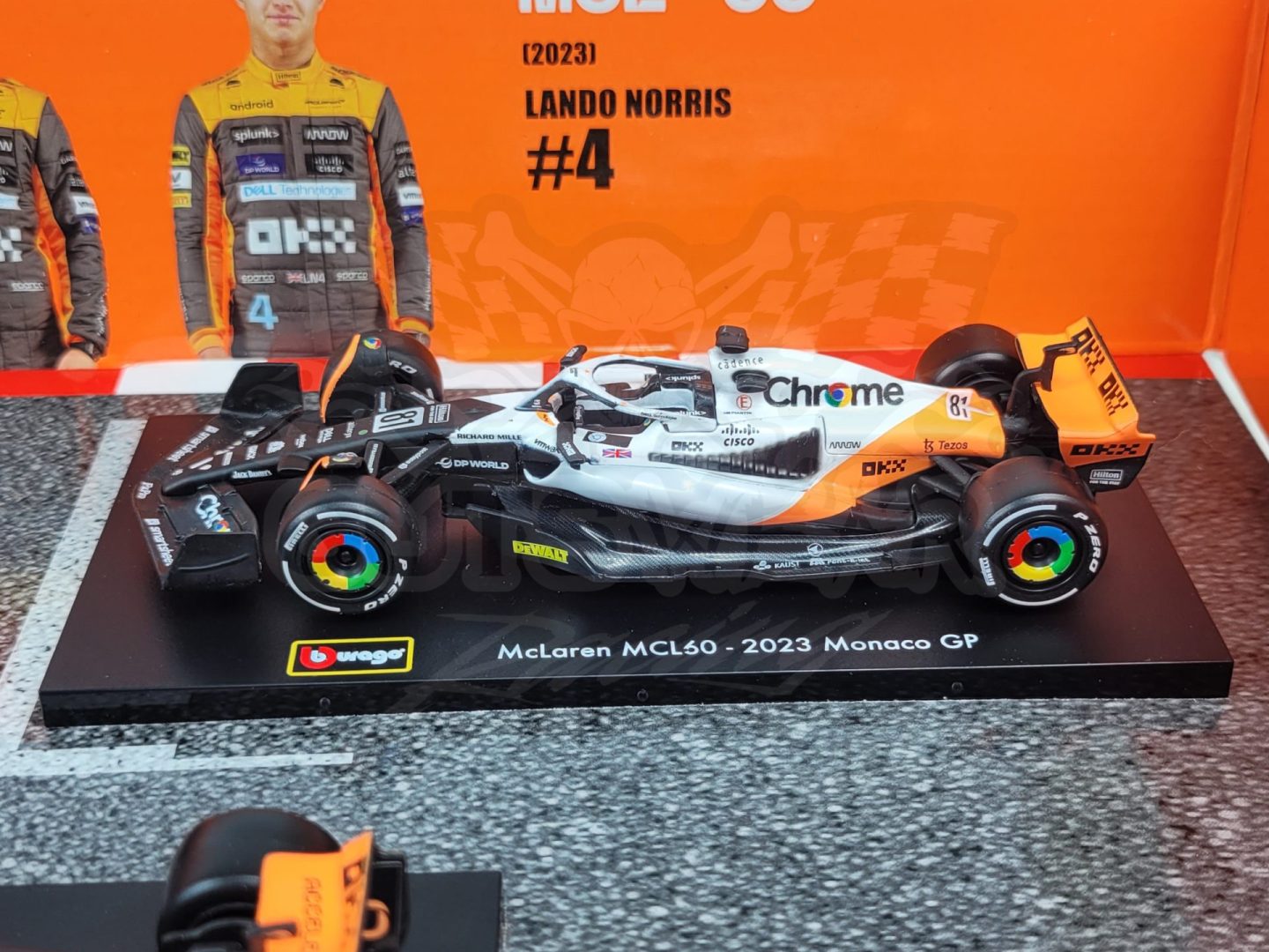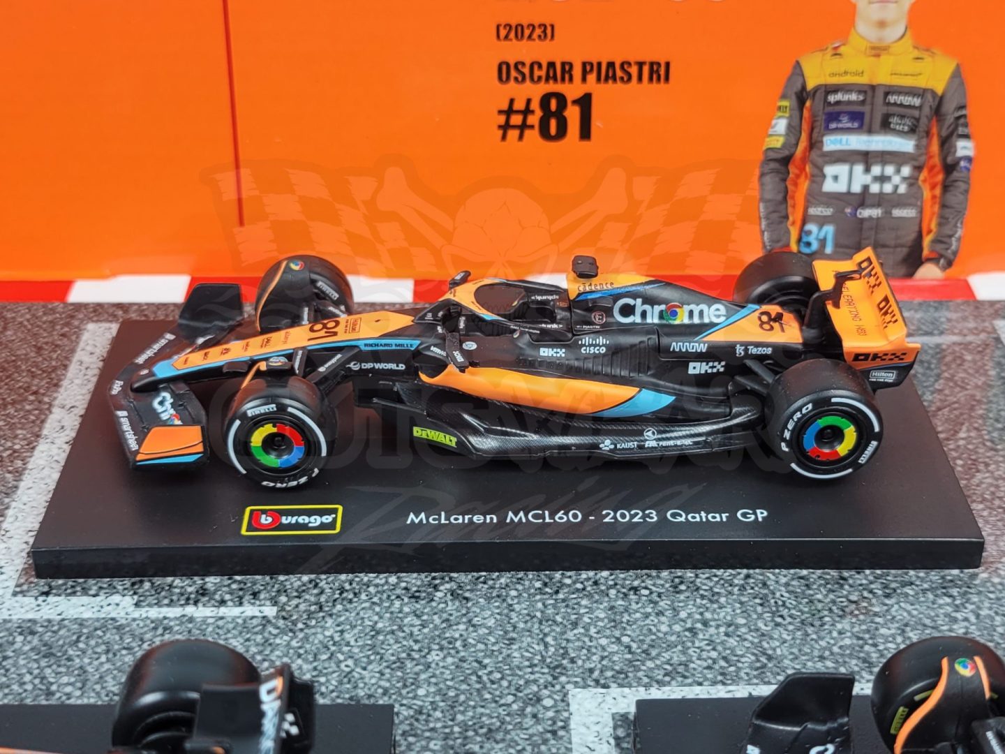 Made by Bburago. This McLaren Formula 1 set includes 6 cars from throughout the last few of seasons including multiple special one off liveries from drivers like Daniel Riccardo, Oscar Piastri, and Lando Norris.