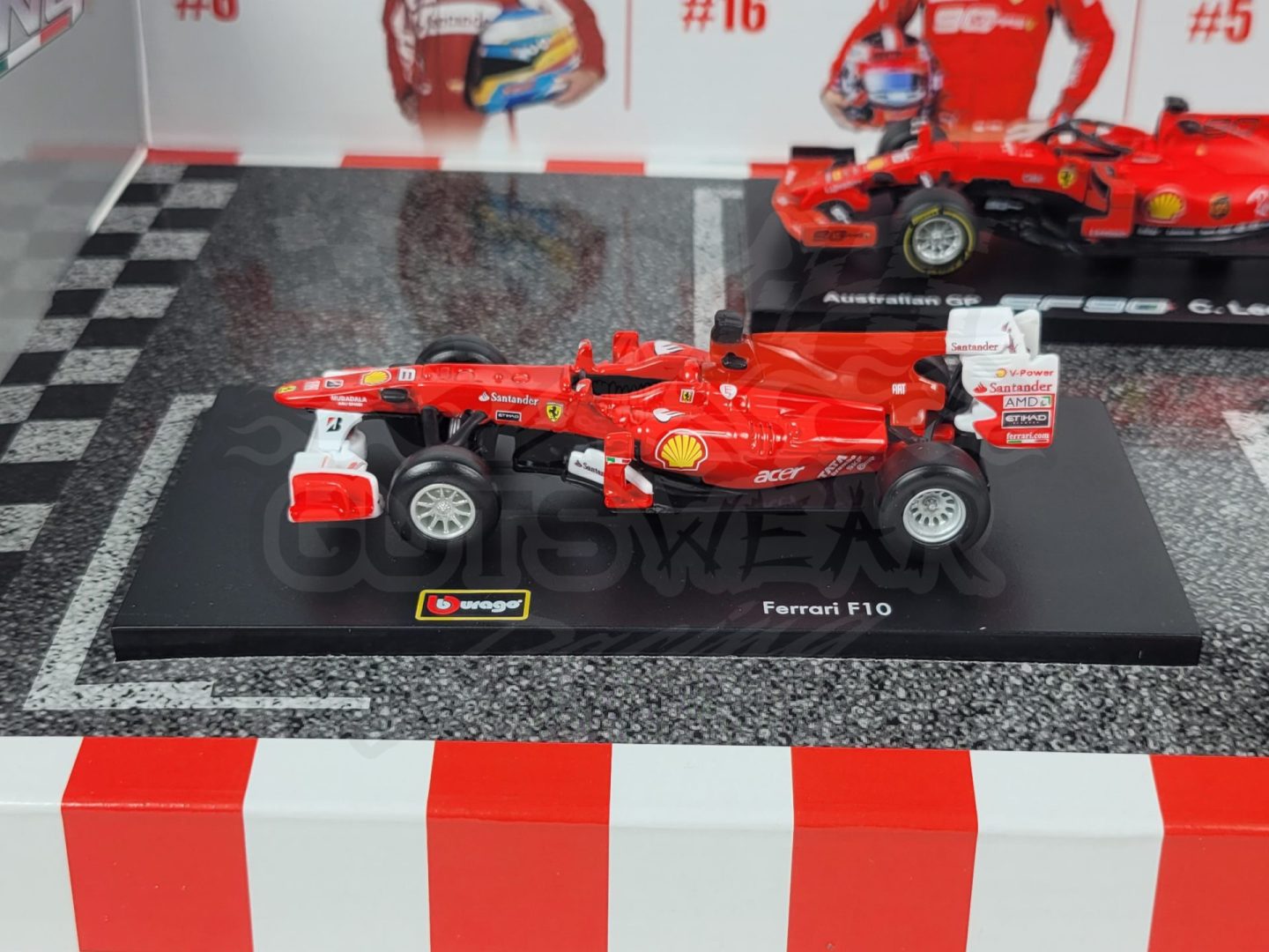 Made by Bburago. This Scuderia Ferrari Formula 1 set includes 6 cars from throughout the last few of seasons and one 2010 Ferrari F10 driven by Fernando Alonso.