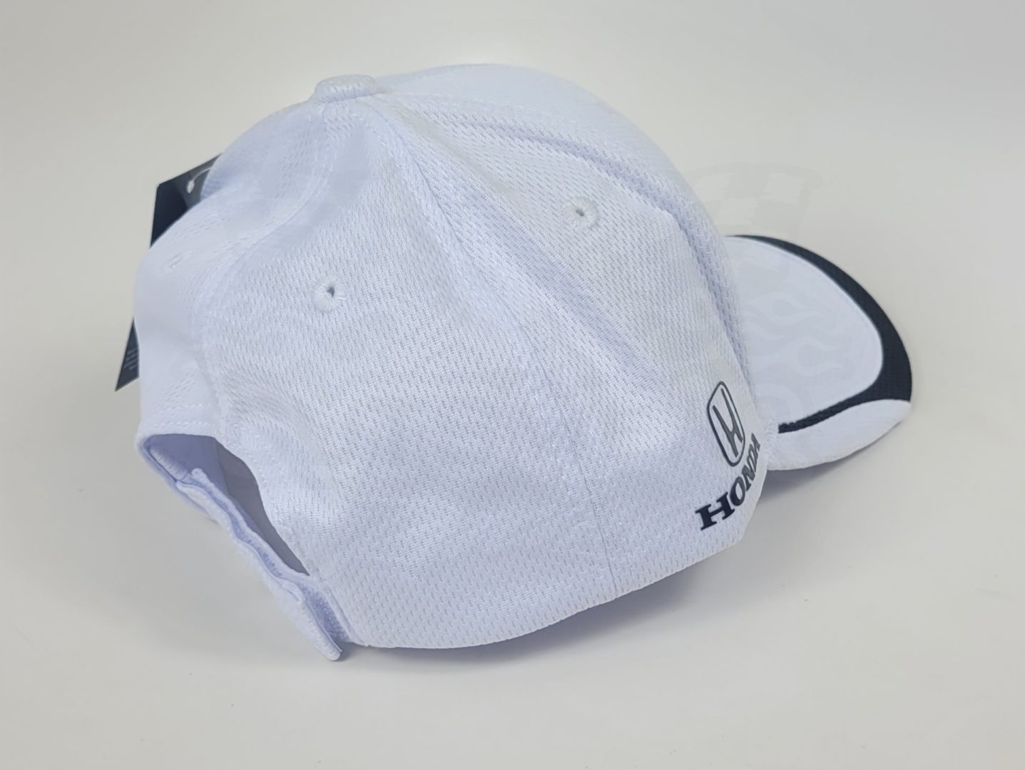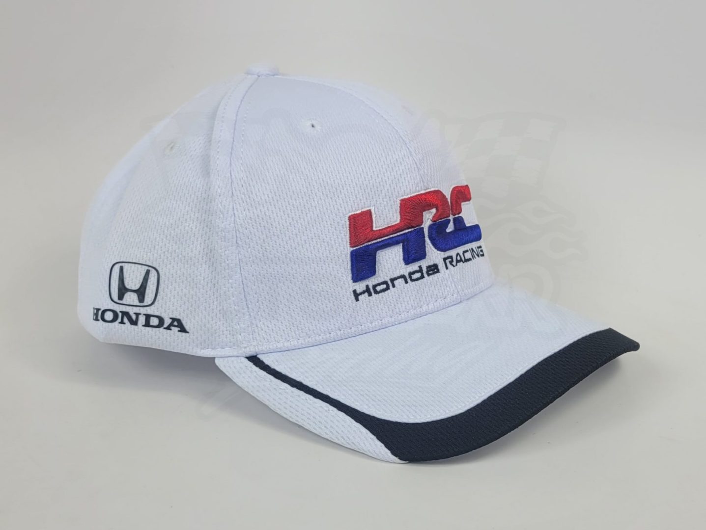 Made by SpeedGear. This white hat features the new Honda Racing HRC branding on the front of the hat with Honda logos shown on both sides as well and has a breathable mesh like material around the back half. This hat is an officially licensed Honda product.